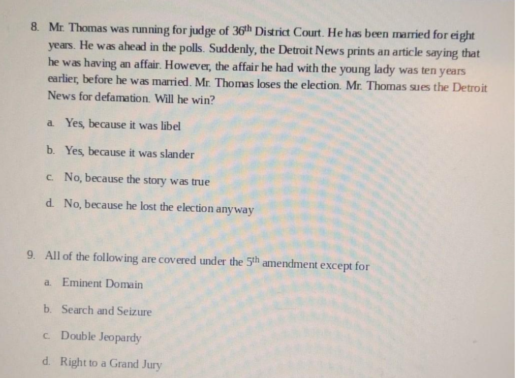 Solved 8 Mr Thomas Was Running For Judge Of 36th District Chegg Com